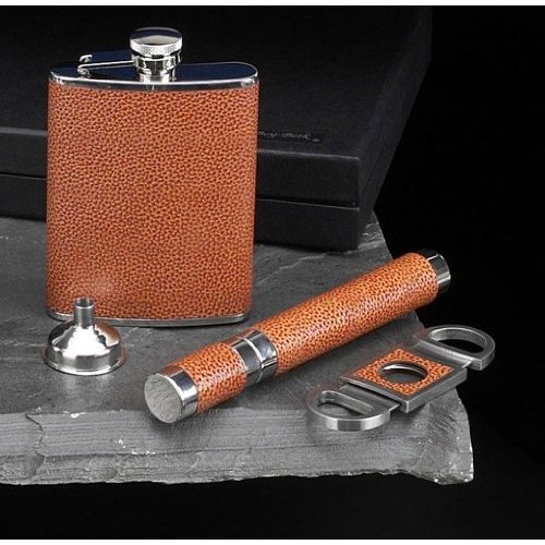 Genuine Leather Stainless Steel Flask, Funnel,Cigar Holder & Cutter Review